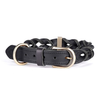 Collar 42-50 Cm Leather Black Ascot