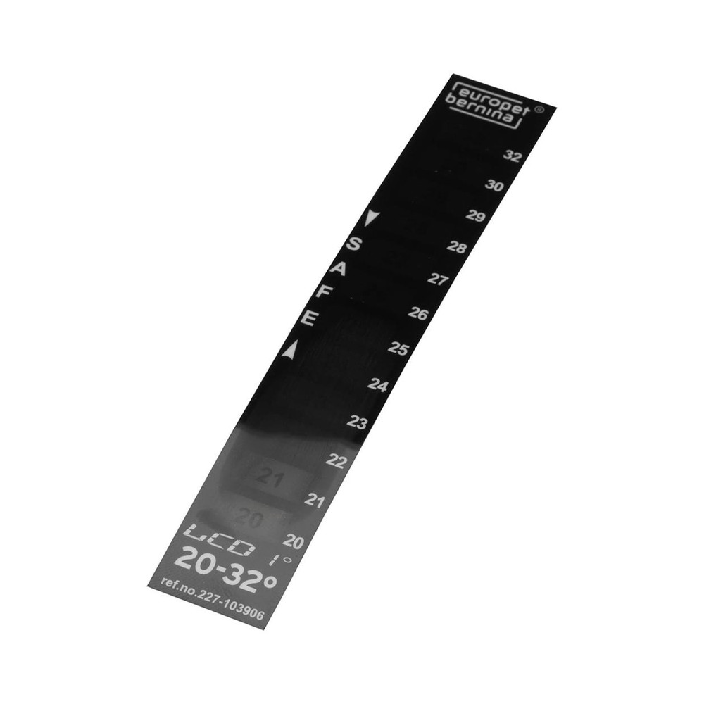 Hitamælir fyrir fiskabúr. Hitamælirinn er límdur utan á glerið á búrinu.