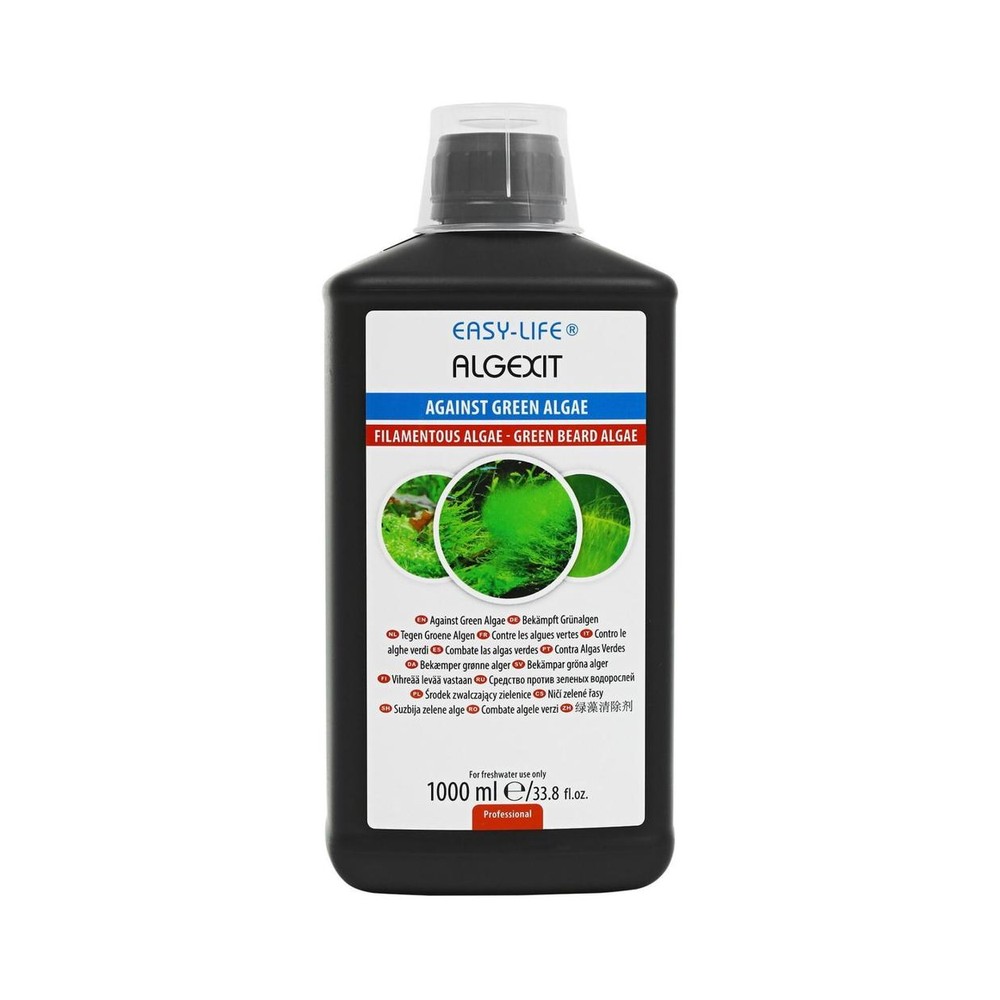 AlgExit er öruggt og skilvirkt, náttúrlegt efni sem virkar mjög vel á flestar gerðið þörungaí ferskvatnsbúrum. Þörungar eins og brúsk þörungur, skegg þörungur, hárþörungur og grænþörungar hverfa við rétta notkunn á AlgExit. Efnið einfallt í notkunn og hefur engin áhrif á lífríkið í búrinu s.s. fiska, plöntur, rækjur og skeldýr. Í fyrstu mun efnið stöðva vöxt þörunganna og svo munu þeir smátt og smátt hverfa
