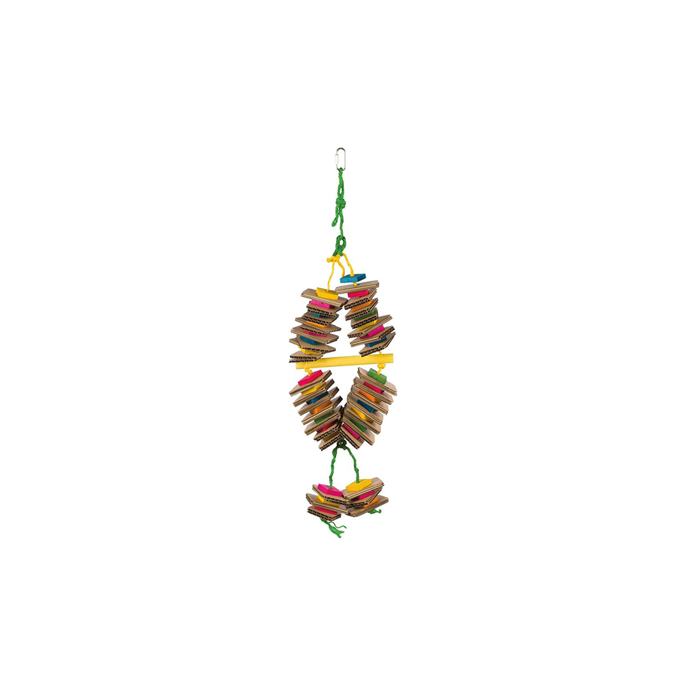 Hangandi leikfang með sísal reipi, pappa og viðarbútum