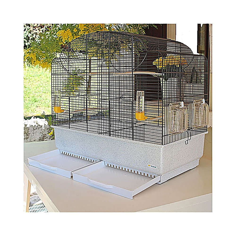 Canto is the canary and exotic birds cage ideal for reproduction, the weaning phase of baby birds or for situations of temporary incompatibility between birds thanks to the comfortable inner partition that divides the habitat into two separate areas. Large and comfortable, it allows you to keep several birds at the same time. The solid and sturdy structure is made of a varnished metallic wire.