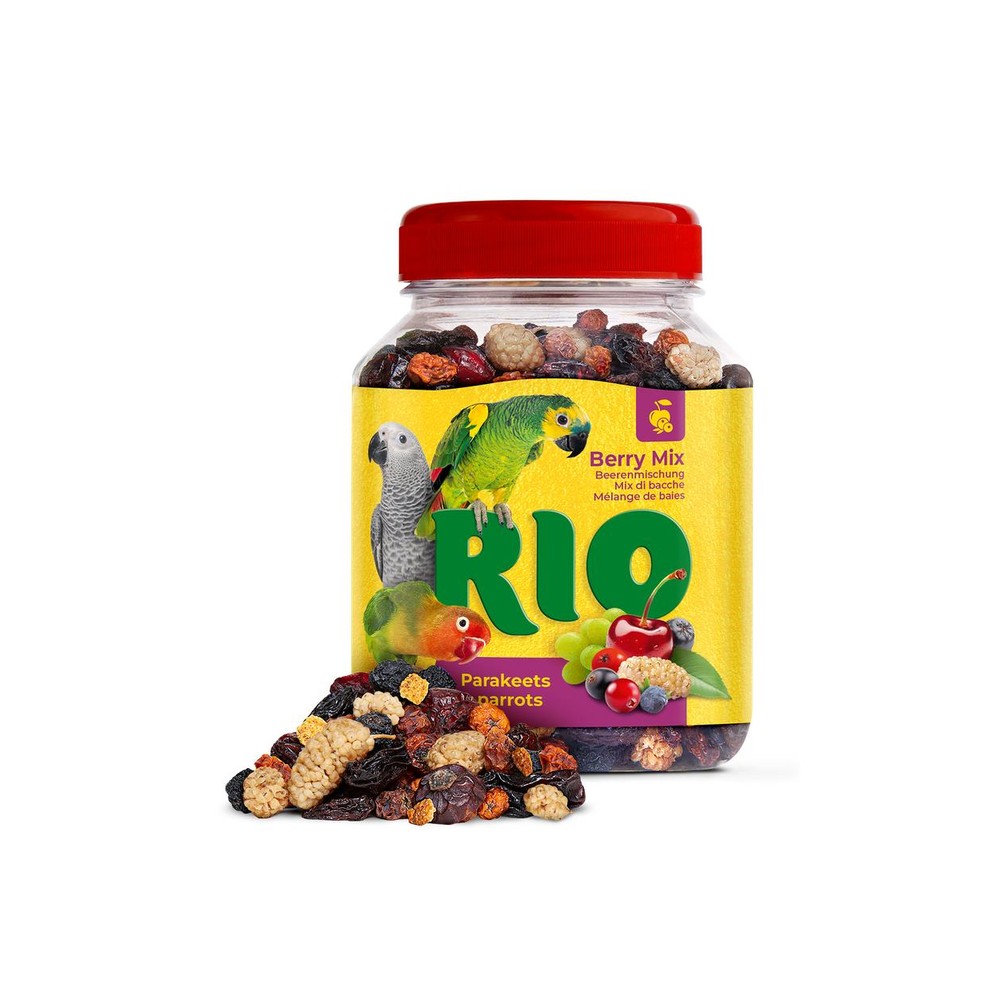 Berry mix – an appetizing blend of ripe berries rich in vitamins and antioxidants. This healthy and tasty treat contains rowan, mulberry, black chokeberry, cranberry, raisins, juniper, cherry, and blackcurrant, which will delight parakeets and parrots and diversify their daily diet. Individual berries from the mix can be offered as a reward to help your pet learn new skills and strengthen trustful bonds.