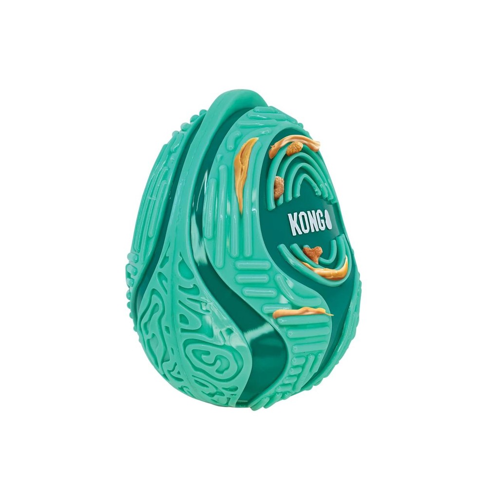 This KONG toy is even more challenging than a licking mat! Because the toy has a weighted and rounded bottom, it wobbles when a dog licks it, without falling over. The different textures make applying tasty spreads (such as peanut butter or pate) very easy. The dog has to try hard to lick all the goodies off the wiggling toy. Ideal as a reward or to combat boredom and anxiety. The toy is easy to wash by hand.