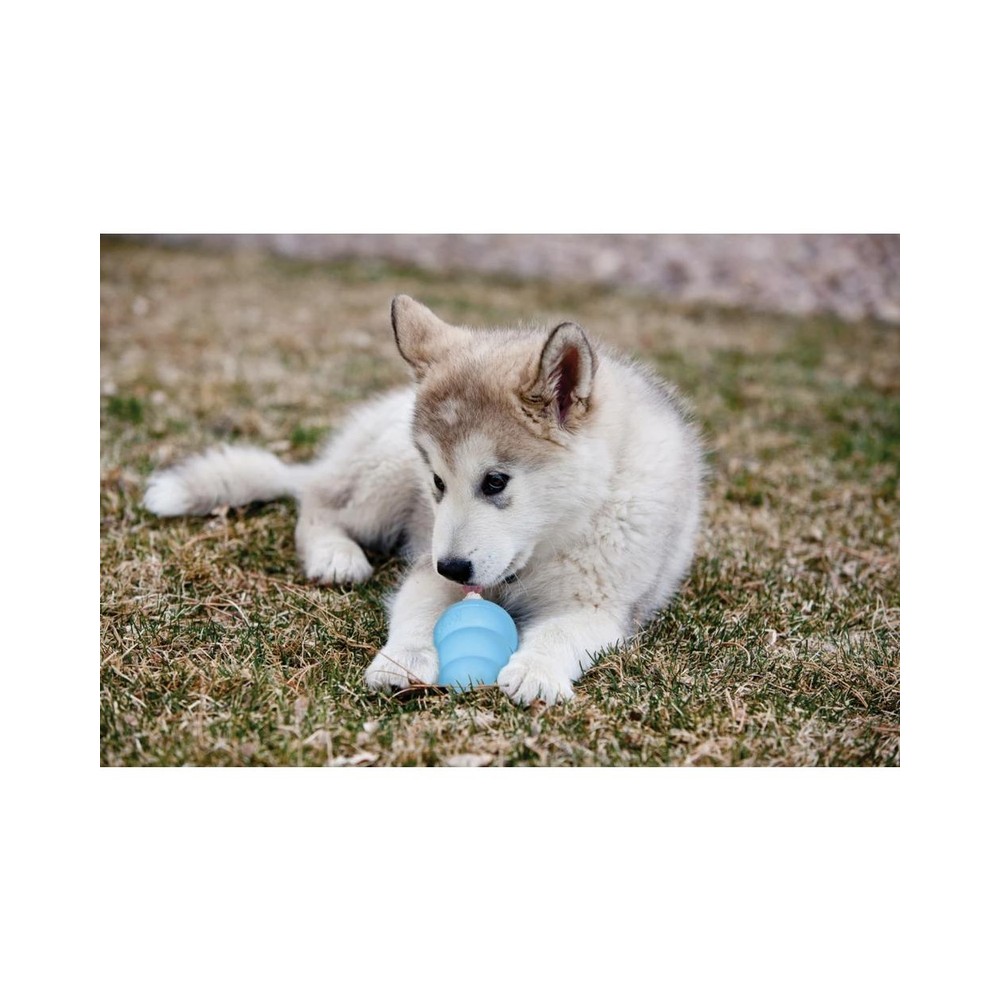 The KONG Puppy toy is the original toy that started the KONG Puppy product line made with our exclusive teething rubber formula. Veterinarians and trainers recommend stuffing the KONG Puppy with KONG Easy Treat, Snacks or Ziggies to aid in crate training, decrease separation anxiety, promote proper chewing behaviour and deter misbehaviour.