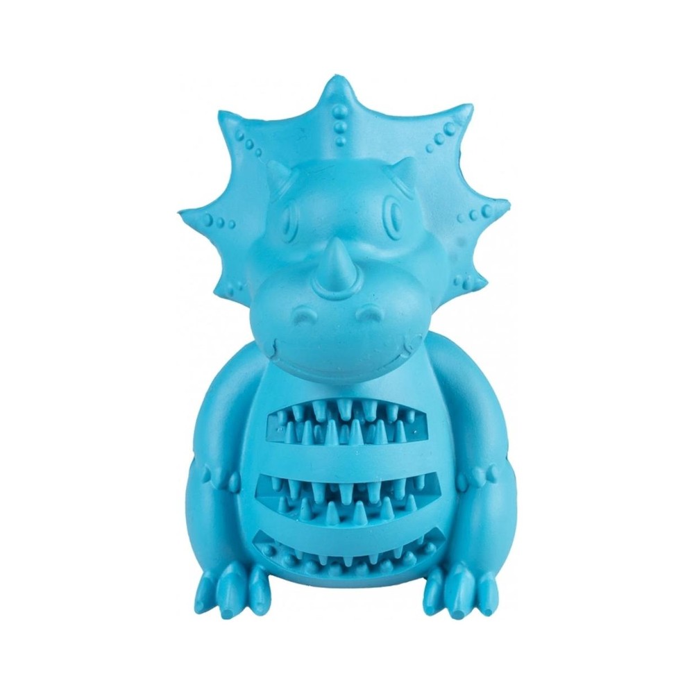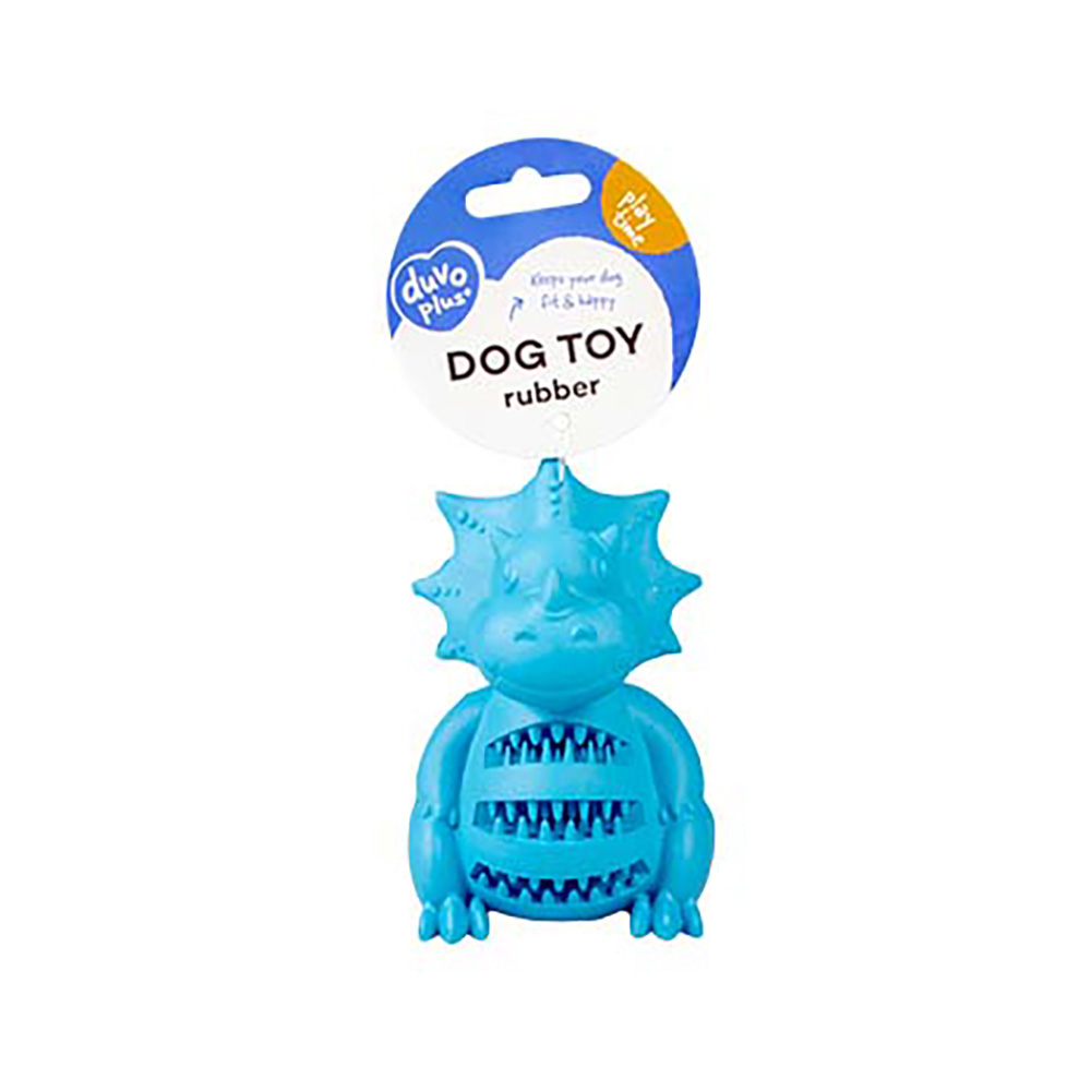 The sitting dinosaur from duvoplus is a hard-wearing and sturdy dog toy made of rubber that playfully rewards your dog with treats. The relief pattern on the sides playfully cleans the teeth and ensures extra grip.