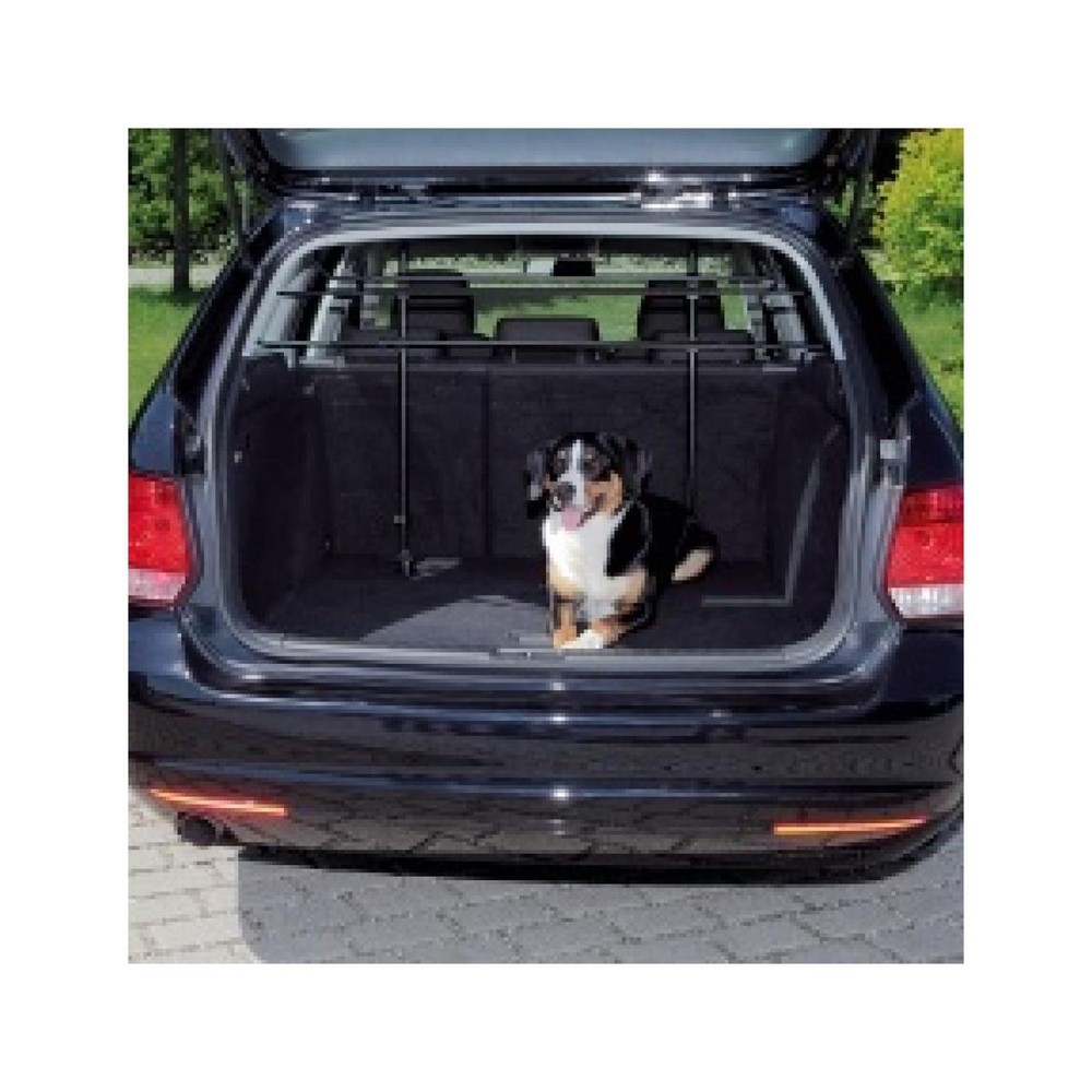 Hundagrind í bíl • Svört stál grind • Smá halli á grindinni svo skottið nýtist betur • Breidd 85-140cm • Hæð 75-110cm