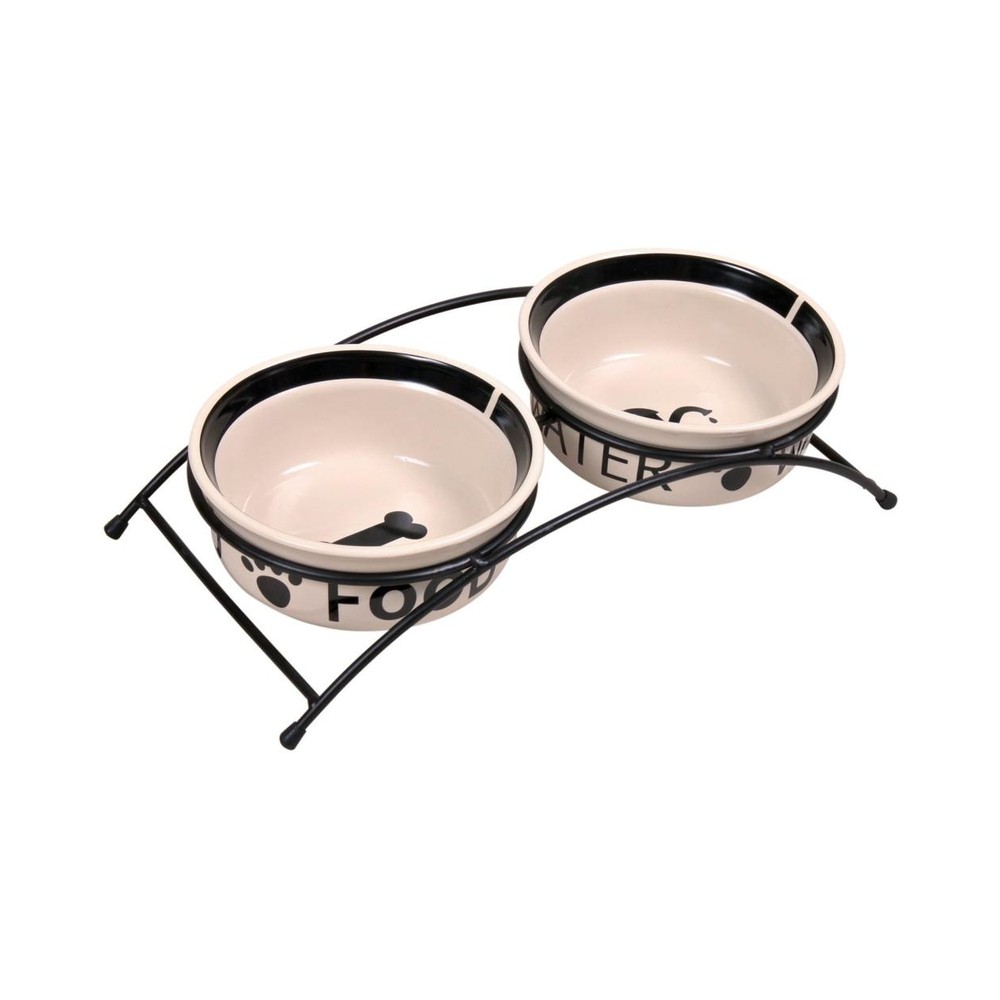 Fóðurskálar á standi Svört/hvít 2 × 0.6