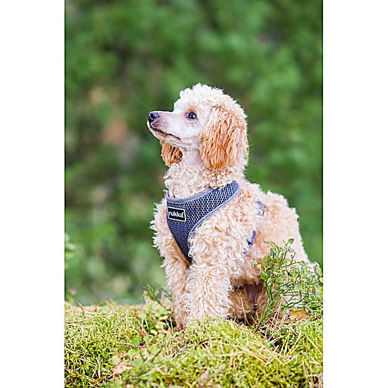 An ergonomic and breathable harness which adapts to the dogs moves. Comfort Air Harness is made of a new kind of breathable material that dries fast. The harness is a perfect choice for water playing and walking in wet weather conditions since it stays lightweight even when exposed to water. The material is easy to keep clean, and its marled colour ensures that stains don’t stick out as much. The harness is easy to put on and to adjust on the chest to the correct size. The machine-washable harness has reflective stitching.
