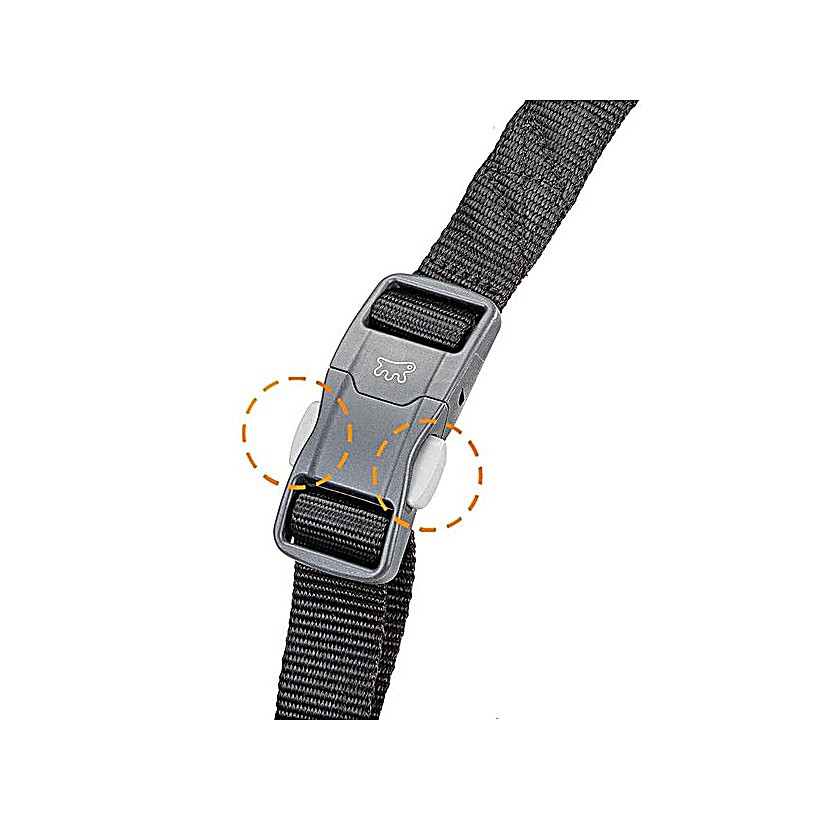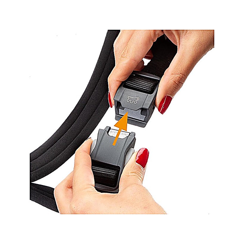 The innovative closing system with automatic buckle facilitates hooking / unhooking through a special magnetic mechanism, practical to manage, safe and reliable. The techno-plastic buckle is light but resistant at the same time, shows a double-button opening system that prevents accidental opening.