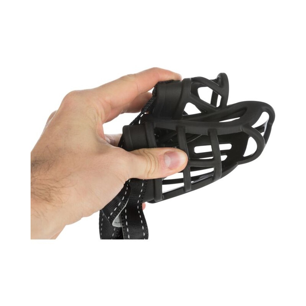 Múllinn situr vel á þar sem hann er festur með þremur böndum.