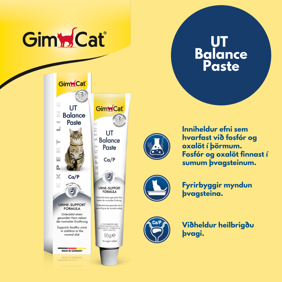 Because of their origins, cats are natural water-savers. They concentrate their urine to minimise the amount of water they excrete, which can cause a build-up of urinary stones. The UT Balance Paste contains ingredients react with phosphorous and oxalates in the gut. Phosphorous and oxalates are found in some urinary stones. The UT Balance Paste thus helps maintain healthy urine and can be fed to cats as part of their normal diet.withoupreservativeswithout flavor enhancerslactose freeArticel number: 427041_x000D_