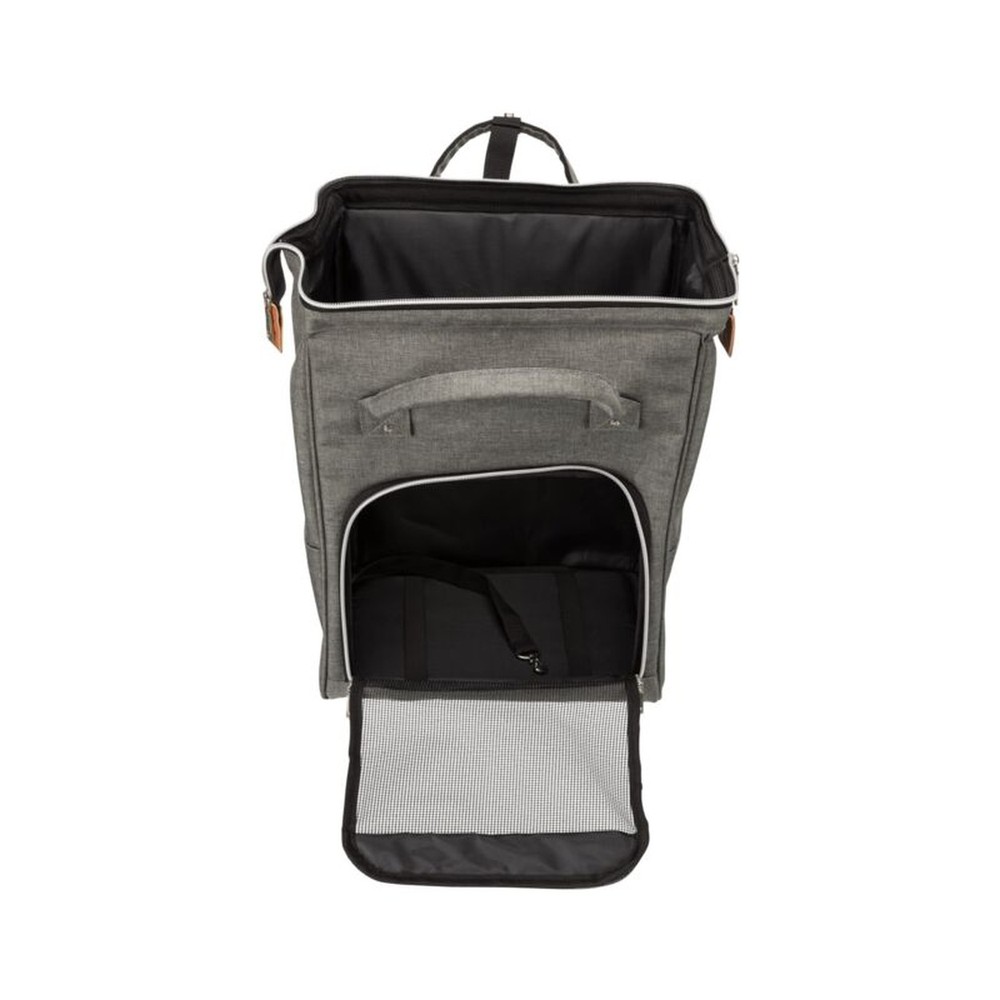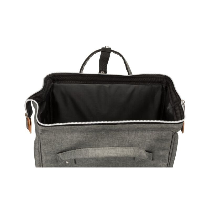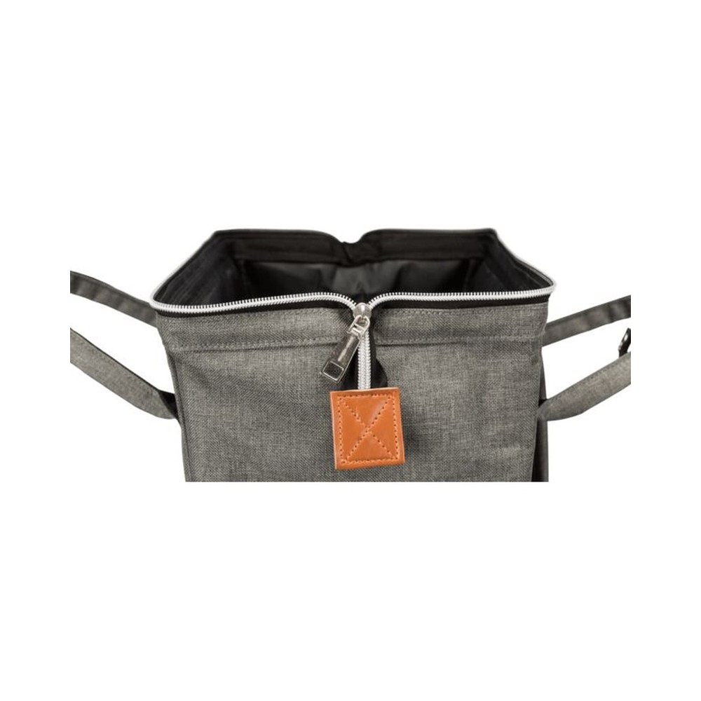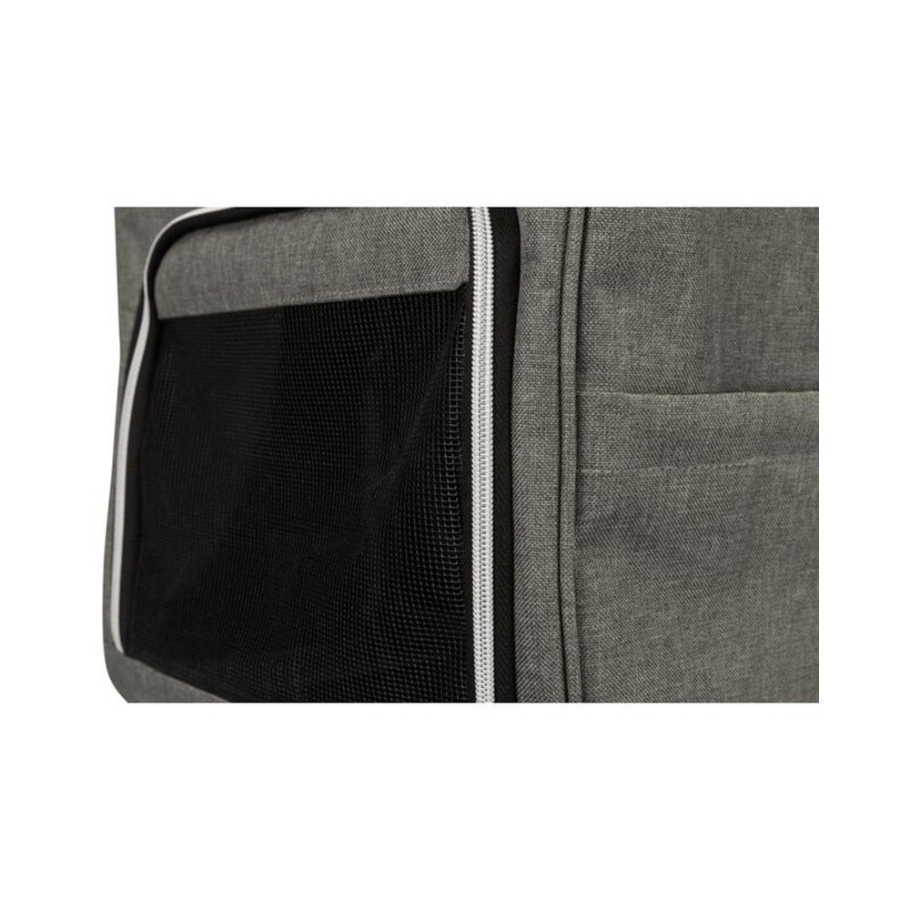 Má líka nota sem töskuMálmgrind viðheldur forminuHægt að opna að ofanverðu og að framanMeð vösum utan áMeð stuttum taum ofan íÚr pólýesterGrátt32 x 42 x 22 cmFyrir hunda upp að 5kg