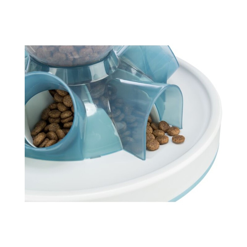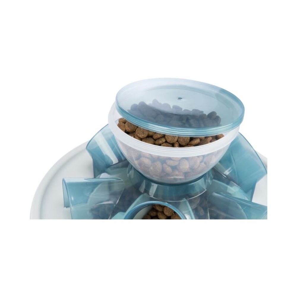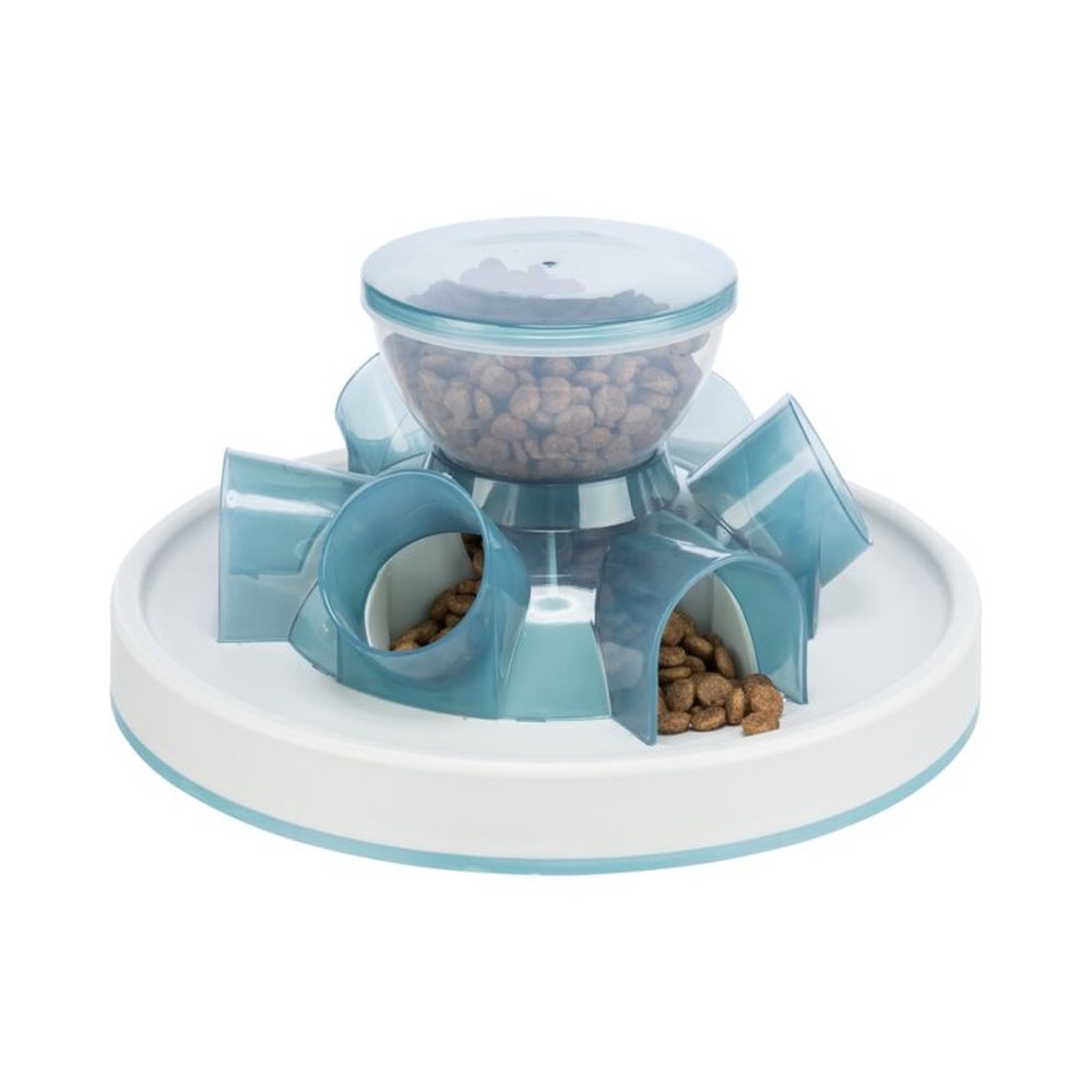 • Virkar bæði sem slowfeeder og heilaþraut. • Maturinn (eða nammið) dettur úr stóra hólfinu niður í 6 lítil hólf sem kötturinn „veiðir“ upp úr. • Inniheldur þjálfunarleiðbeningar