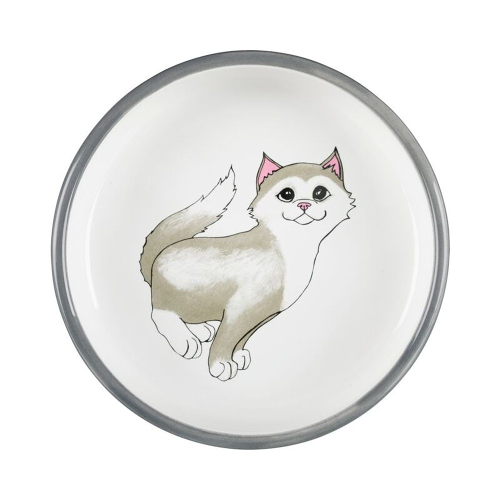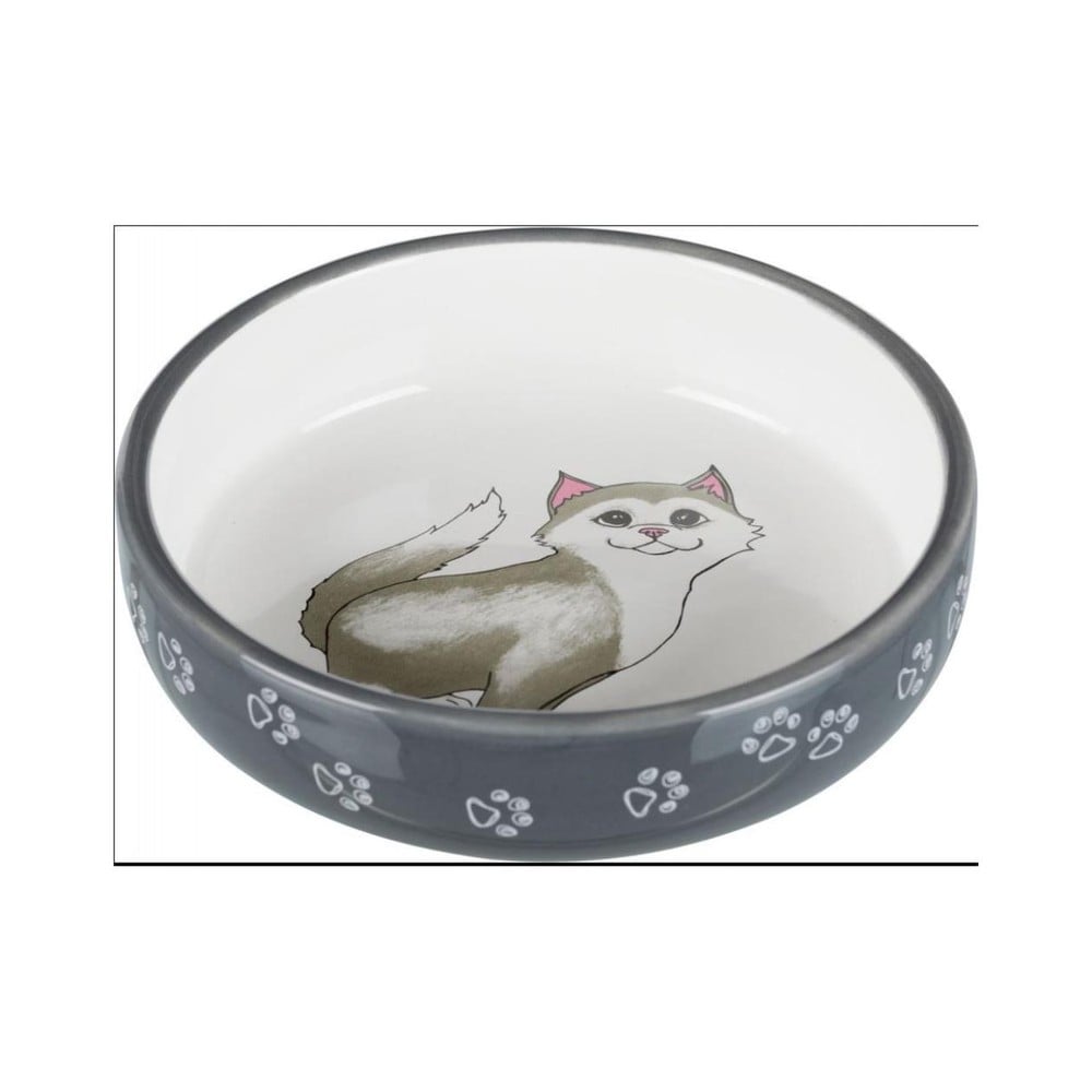 Bowl flat cat/paws cer.0.3 l/15cm grey magn