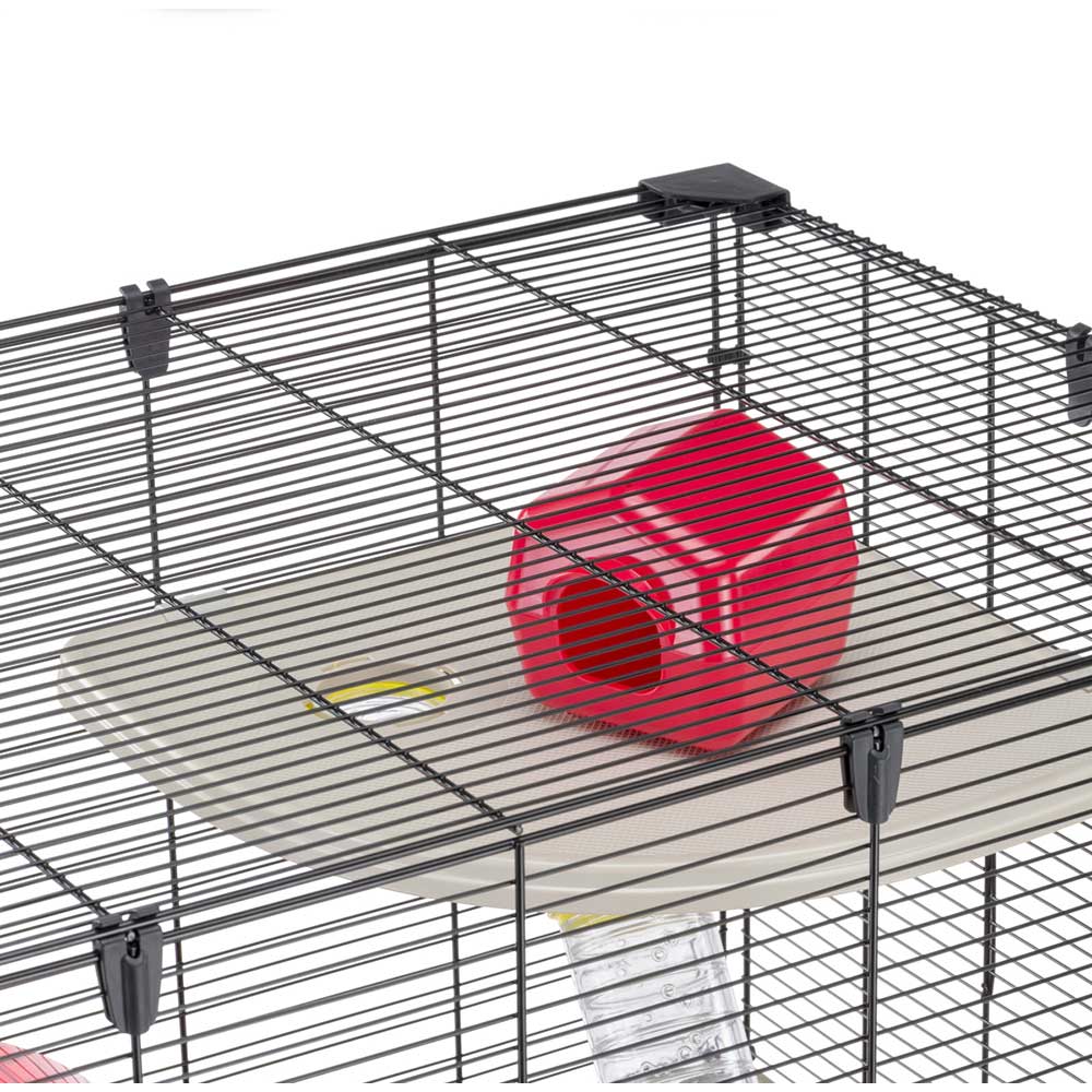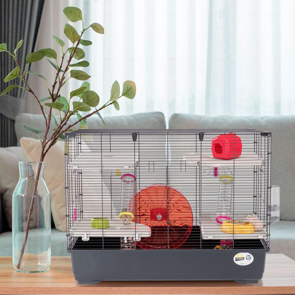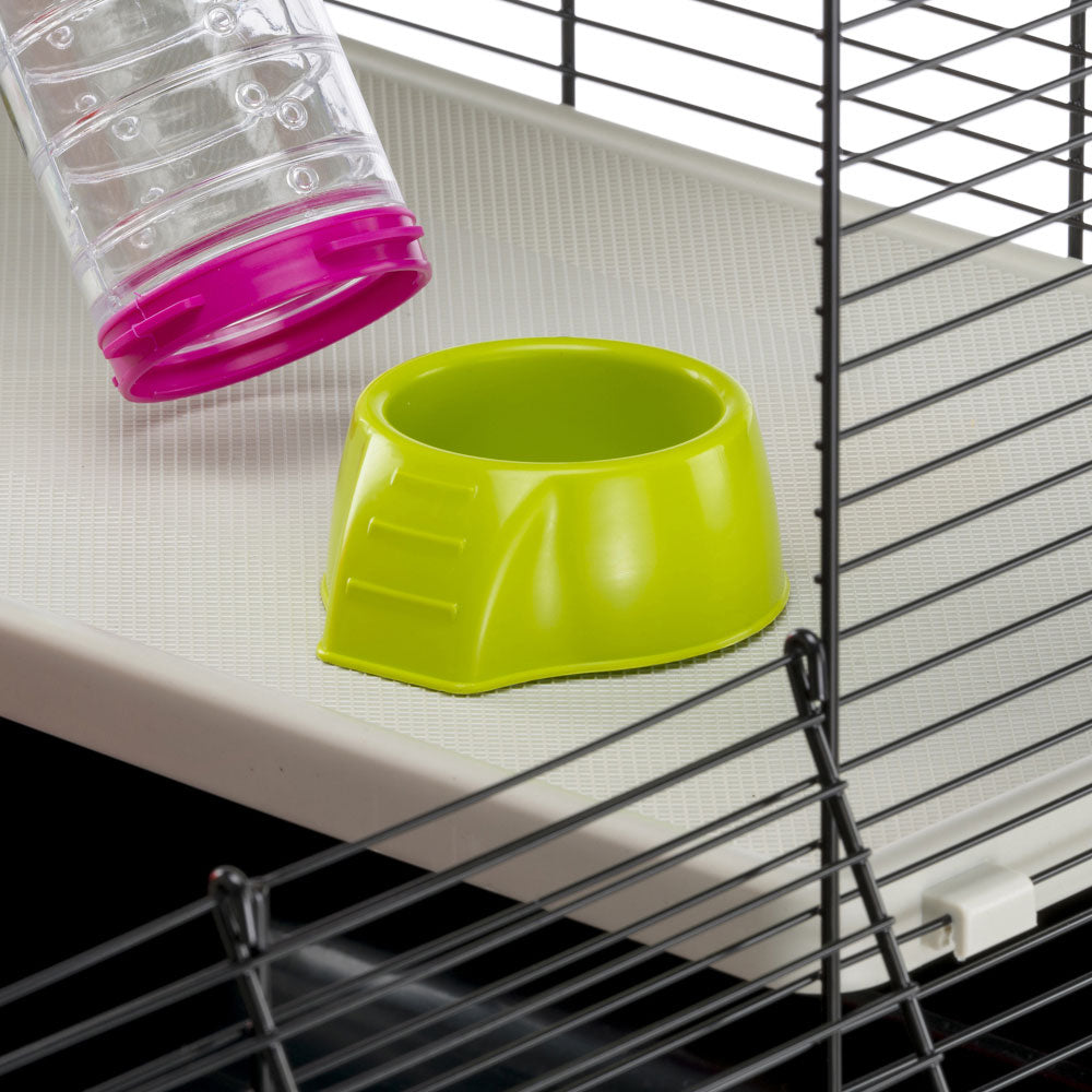 The cage is made of painted wire mesh with a large plastic bottom that effectively contains dirt and litter, preventing it from escaping, allowing your small animal to devote itself to its favourite activity, digging and hiding in the sawdust. Safe and easily accessible, it also has convenient front and side openings for easy access, equipped with a locking hook to prevent any escape of the animal.